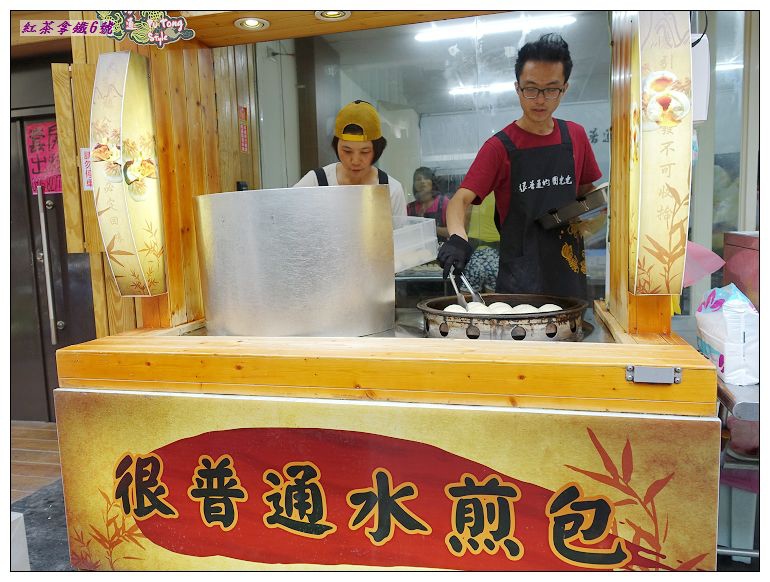 老闆就是那位穿著紅色衣服,正在忙碌的煎著水煎包